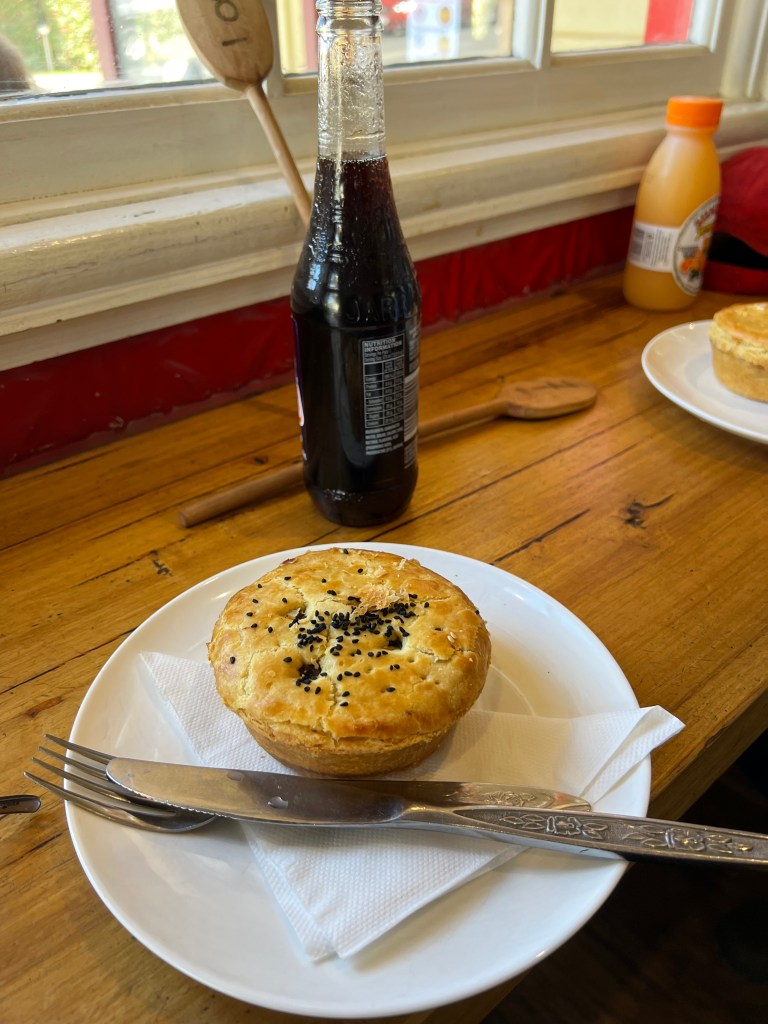 Solid pie, great filling (with some surprise veg in there), and caught me by surprise with the shortcrust-style pasty. Unorthodox, and I like it. Served with cutlery, which as always, I did not use. pic.twitter.com/Uurmo5yx2Y