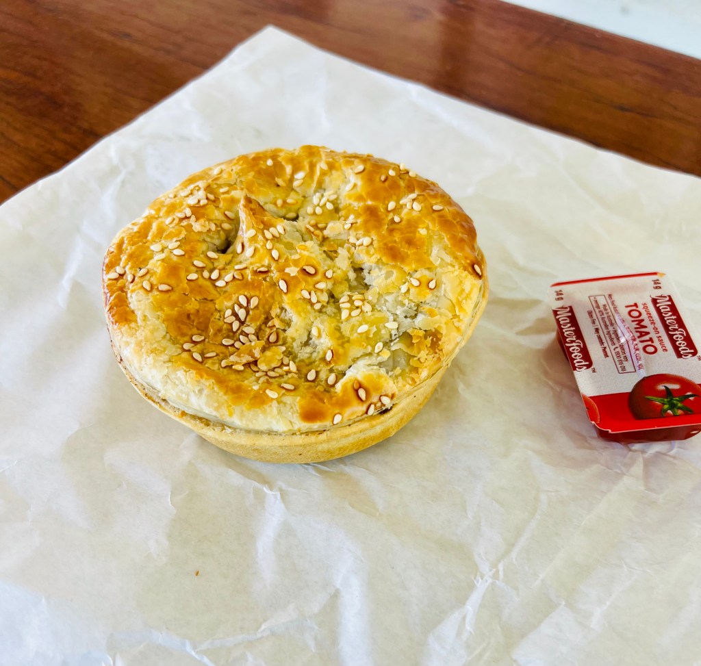 I had a “Traditional”, which is a bit of a spin on a Four’n’Twenty as far as filling goes — with a little vegetable in there just to keep the colon on the straight and narrow. It’s a tall pie, so you might need to distend your jaw to get it in your mouth, but I promise you it’s worth it. It had sesame seeds riding on of the flaking top, which threw me a little. I’m not sure whose tradition involves sesame seeds, but who am I to argue?
